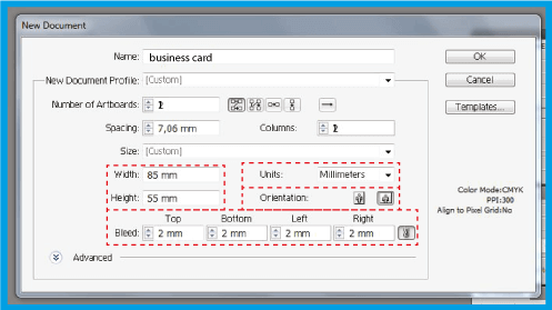 .A opcióban állítson be 2 mm-t (ajánlott ezt a méretet beállítani minden létrehozott dokumentumhoz).