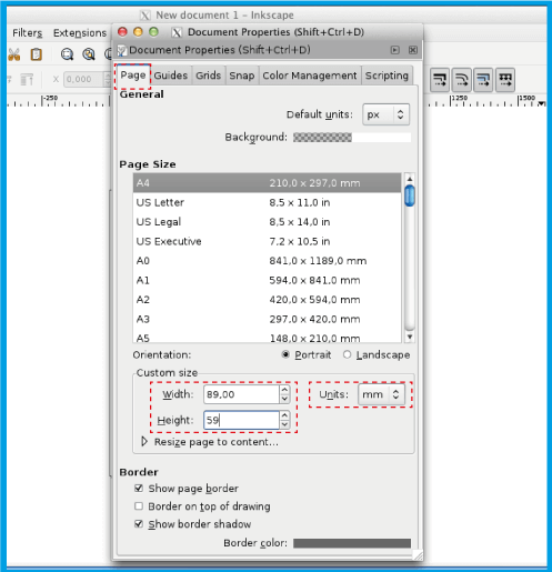 .Ügyeljen arra, hogy 4 mm-t (0,4 cm-t) adjon a dokumentum magasságához és szélességéhez. A 8,5x5,5 cm-es névjegykártya esetében adjon meg 8,9x5,9 cm-t.