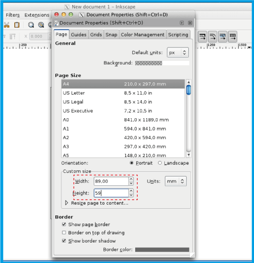 .A mezőben adja meg a dokumentum szélességét, a mezőben pedig a magasságát.